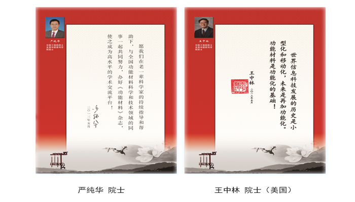 《功能材料》由黃伯云院士、嚴純華院士擔任主編,組建了陣容強大、學術水平高、凝聚力強的“第九屆編審委員會”,共有知名專家702名,包括:陳力俊院士、成會明院士、都有為院士等40位來自中國科學院、中國工程院、發展中國家科學院等海內外院士組成特聘編委(終身),以嚴純華院士擔任主任委員,林元華教授、潘峰教授等知名專家擔任副主任委員,來自美國、英國、德國等地的128位知名專家、學者擔任編委,494名在學術上有深厚造詣、較高學術成就的中青年學者擔任審稿專家。