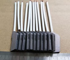 用于各類型動態(tài)導(dǎo)電機構(gòu),具有低摩擦、高導(dǎo)電、高耐磨、長壽命特性,在航空、航天、軌道交通等領(lǐng)域應(yīng)用廣泛。理化性能:①致密度≥92%;②硬度:≥7HBS;③摩擦系數(shù)≤0.3;④抗壓強度≥10Mpa;⑤50h磨損值≤0.15mm;⑥電阻率≤5Ω.m;⑦連接電阻≤3mΩ。