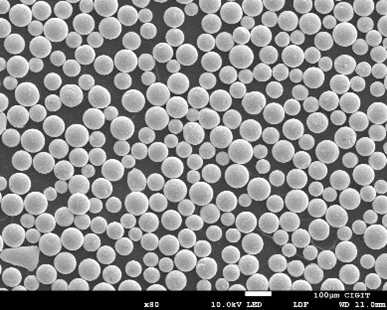 ①球形度:≥95%;②含氧量:≤200ppm;③D50:≤45;④流動性:≤30s/50g;⑤松裝密度:≥40%;⑥空心球/衛星球:無。